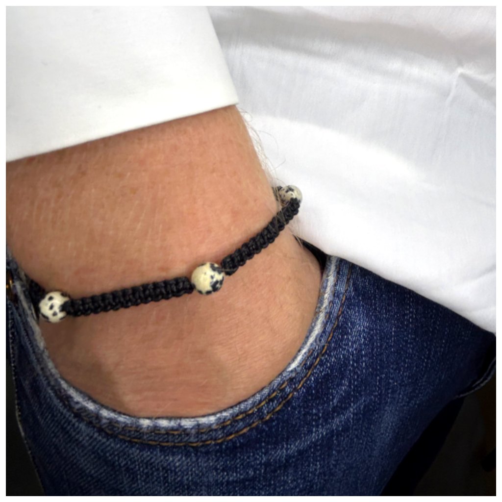 Macramé náramek – Jaspis dalmatin | Síla a rovnováha