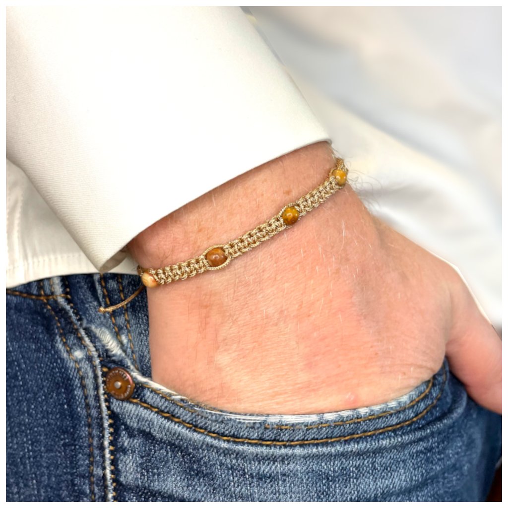 Skvěle se hodí jako náramek pro muže i ženy, kteří milují přírodní šperky s duší. Kombinuj s dalšími ručně vázanými macramé náramky nebo si navrhni vlastní kombinaci.