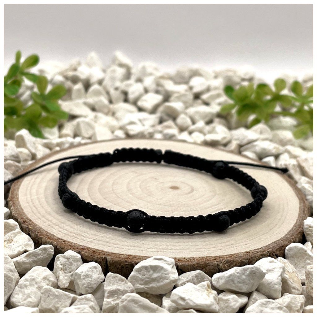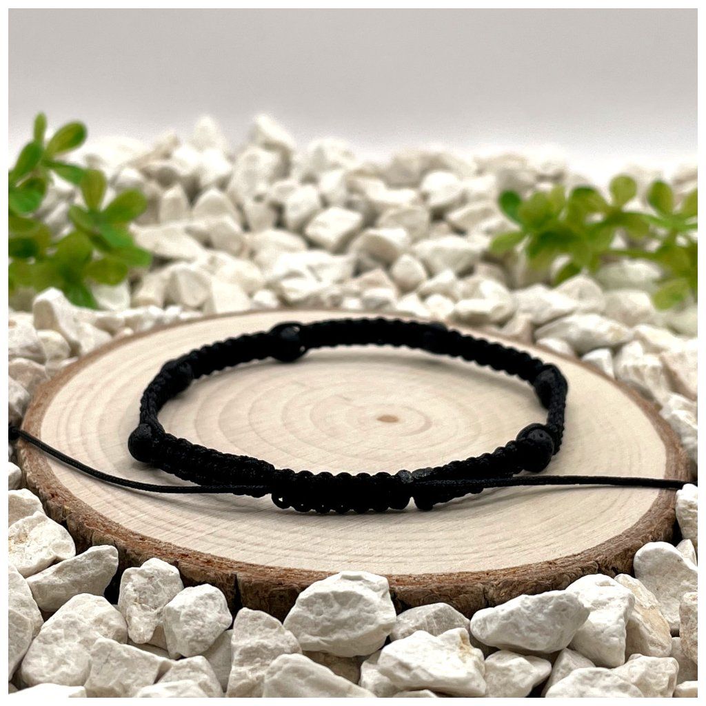 Macramé náramek tvoří korálky černé lávy o velikosti 4 mm, které jsou zasazeny do černého nylonového provedení. Celek doplňuje posuvný uzel, díky kterému lze délku pohodlně upravit v rozmezí 16,5 cm - 24,5 cm. Náramek se tak dobře přizpůsobí zápěstí a je praktický pro každodenní nošení.