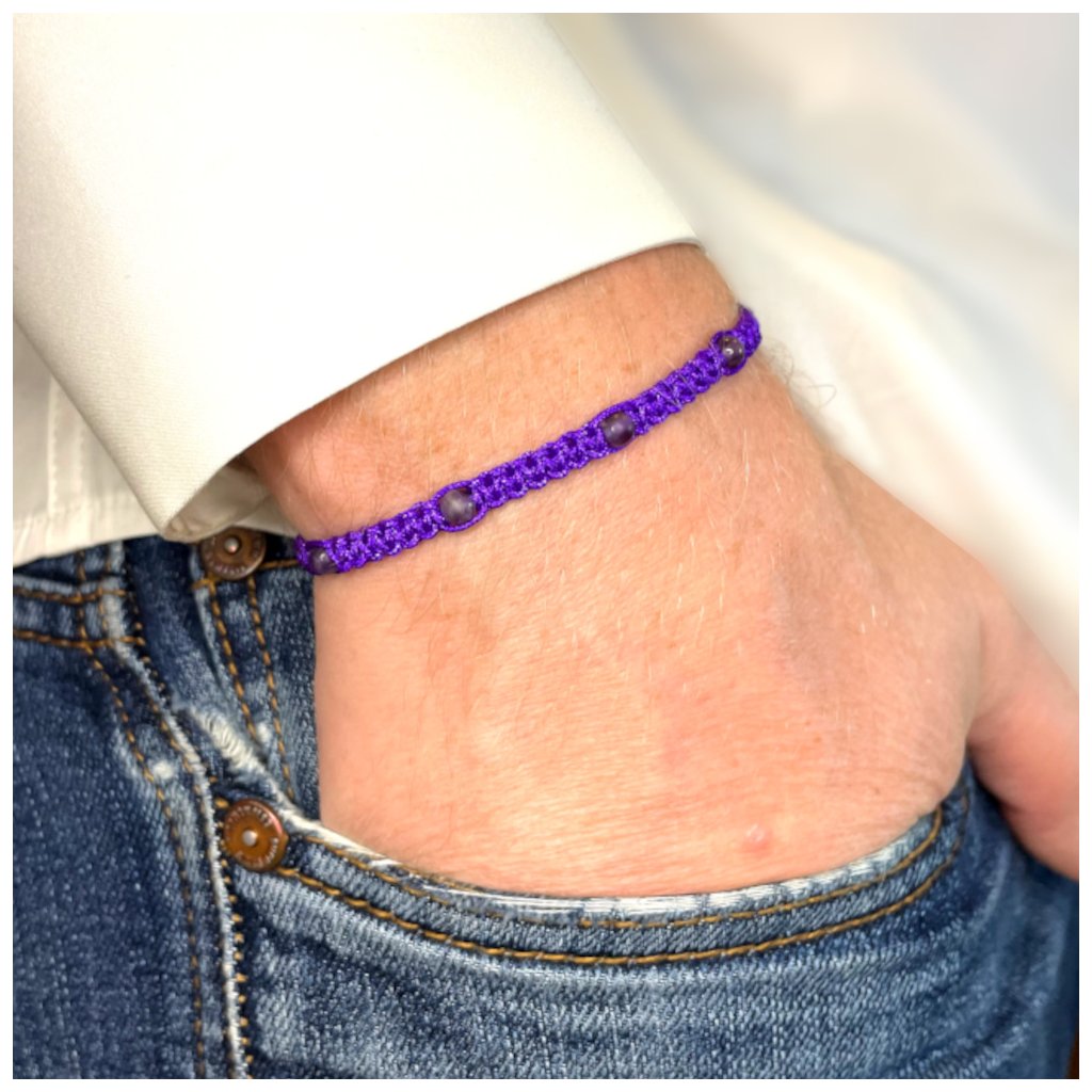 Matný ametyst v ručně vázaném macramé náramku – kámen klidu a duchovní rovnováhy