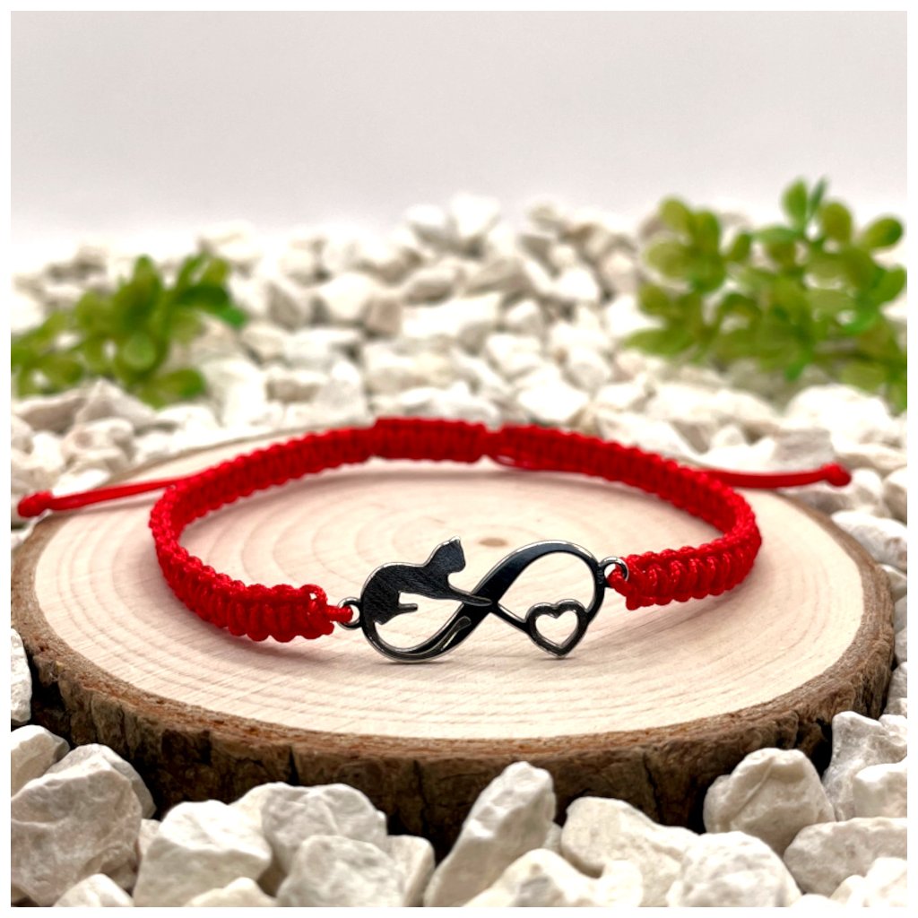 Spojení motivu nekonečna a kočky vytváří jemný vizuální symbol, který může být vnímán jako vyjádření trvalého vztahu, blízkosti nebo osobního pouta. Hravý detail kočky dodává náramku osobitý charakter a lehkost.
