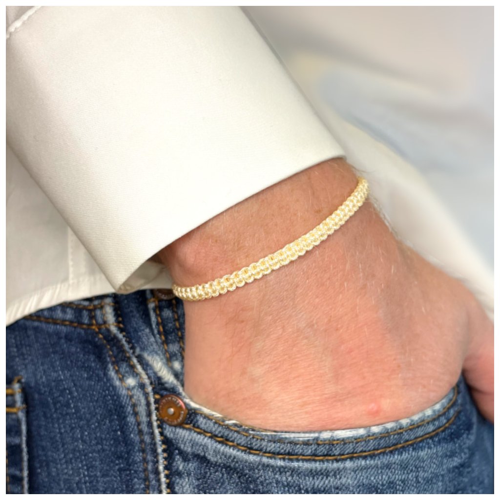 Světle žlutý macramé náramek – jemný doplněk s nastavitelnou délkou