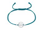 Ručně vázaný provázkový náramek z afrického tyrkysu (4 mm), doplněný o stříbrné kuličky. Díky posuvnému uzlu na zelené nylonové šňůrce se délka snadno upraví mezi 12–26 cm....