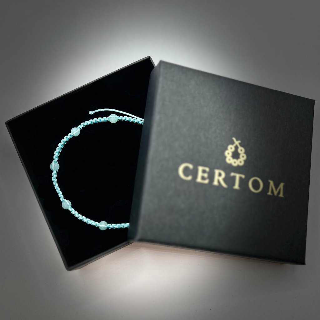 Modrá nylonová šňůrka se dobře kombinuje s neutrálními barvami i světlými letními tóny. Náramek lze nosit samostatně nebo jej vrstvit s dalšími macramé či minerálními náramky pro osobitější vzhled.