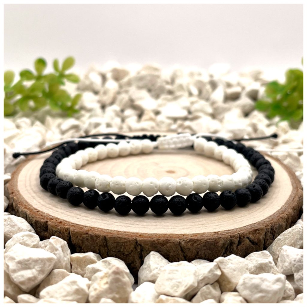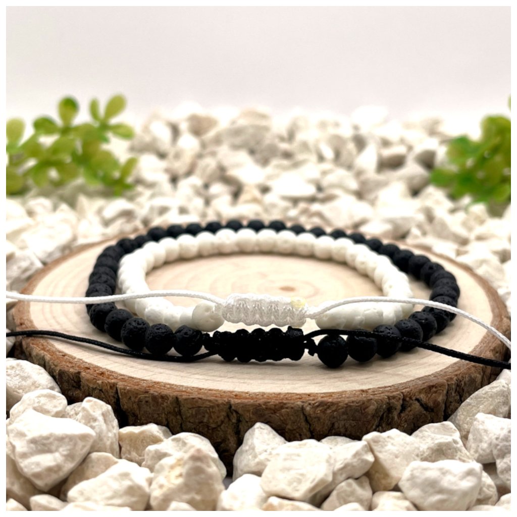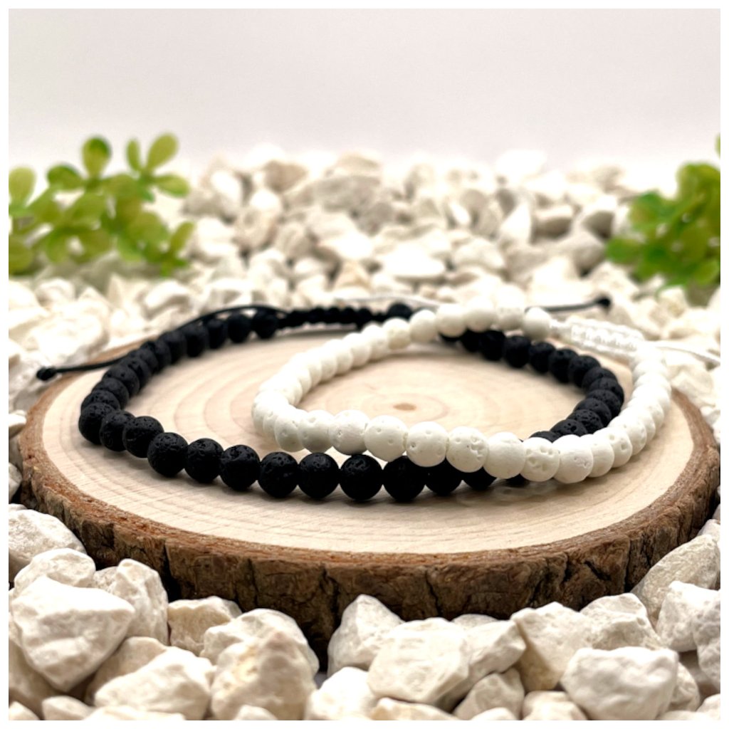 Provázkové náramky z lávy – Bílá a Černá – Ochrana, energie a rovnováha