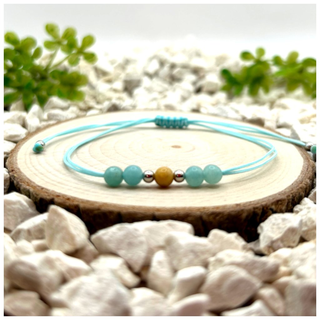Provázkový náramek Amazonit a Achát krajkový – klid a kreativita