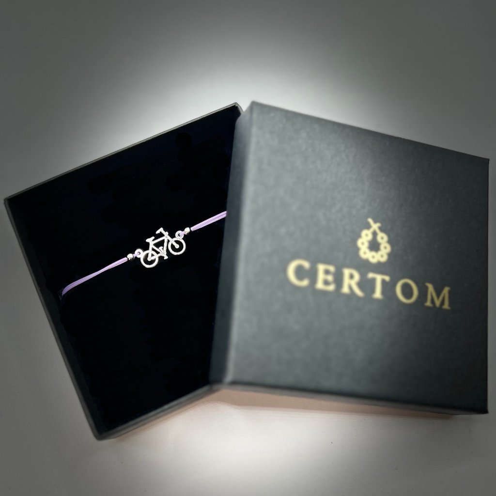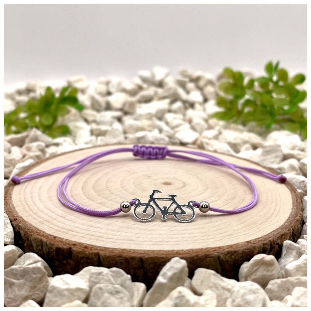 Provázkový náramek se stříbrným přívěskem kola kombinuje jednoduchý tvar s jemným symbolickým motivem. Přívěsek z ryzího stříbra Ag925 je zasazen do fialové nylonové šňůrky, která dodává celku svěží barevný akcent a současně zachovává minimalistický charakter.