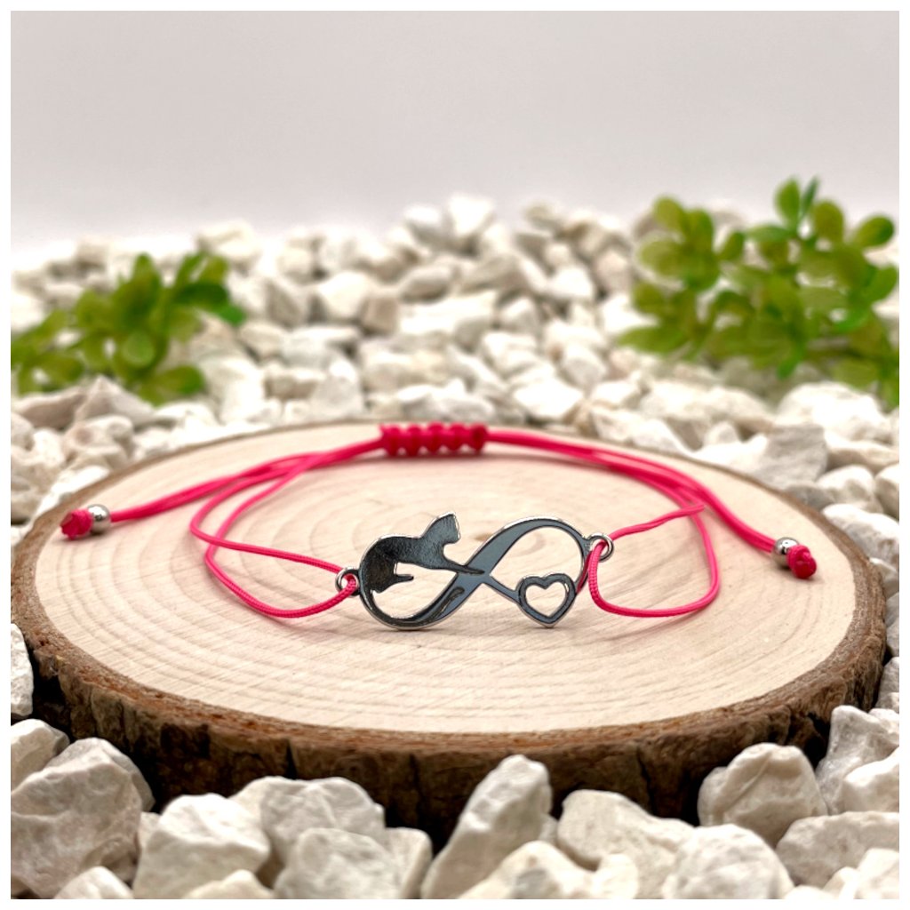 Spojení motivu nekonečna a kočky vytváří jemný symbol, který může být vnímán jako vyjádření trvalého vztahu, blízkosti nebo osobního pouta. Hravý prvek kočky dodává náramku lehkost a nenucený styl.
