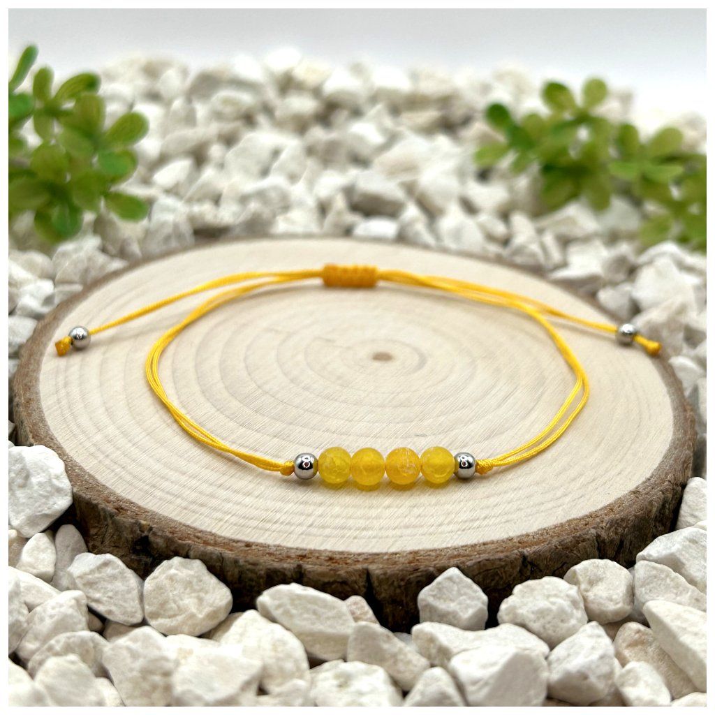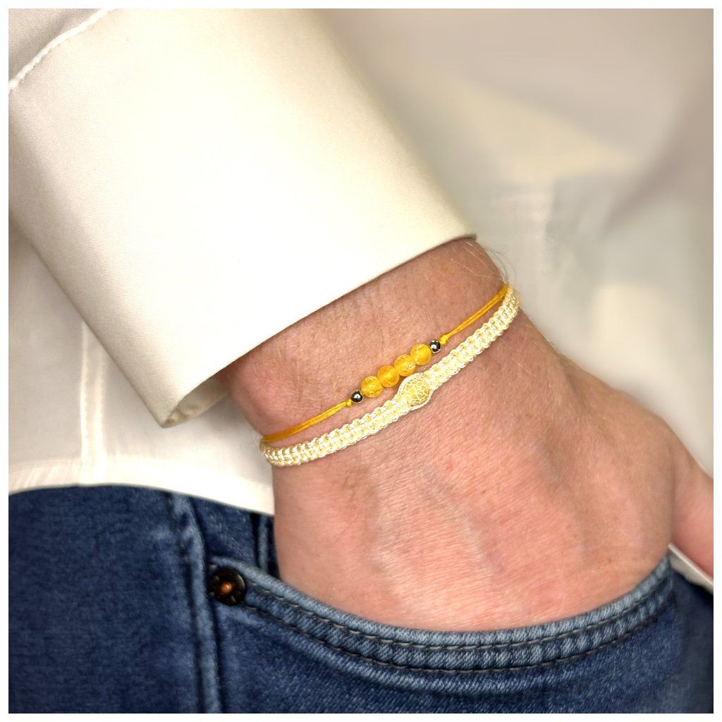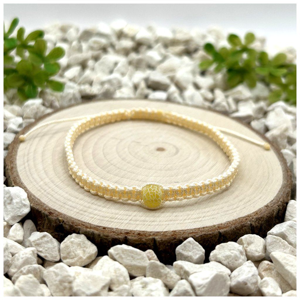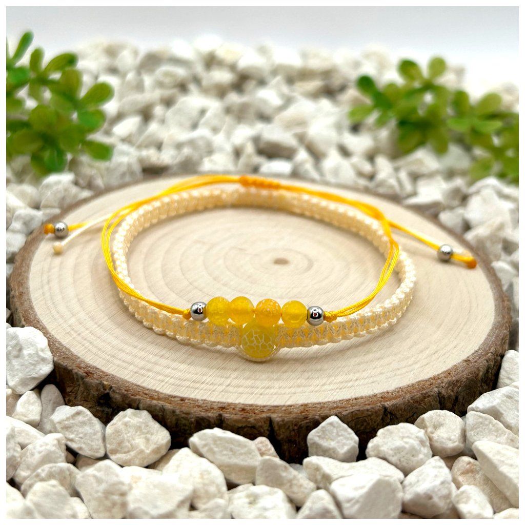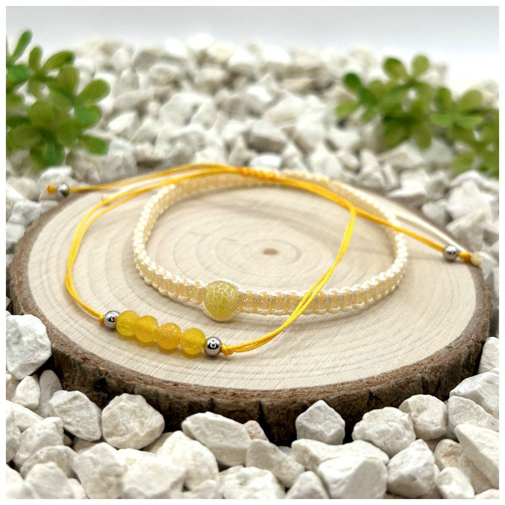 Set náramků se žlutým achátem: provázkový a macramé ve světlém stylu