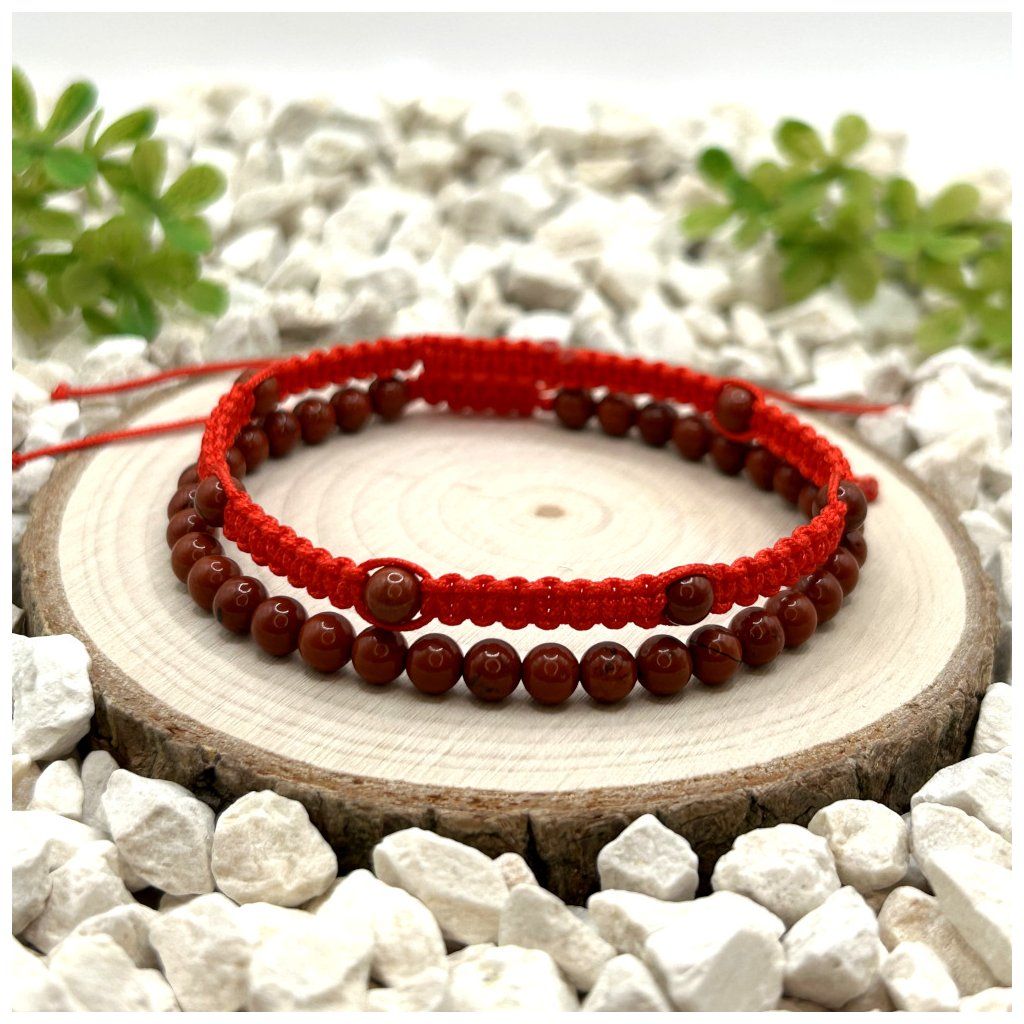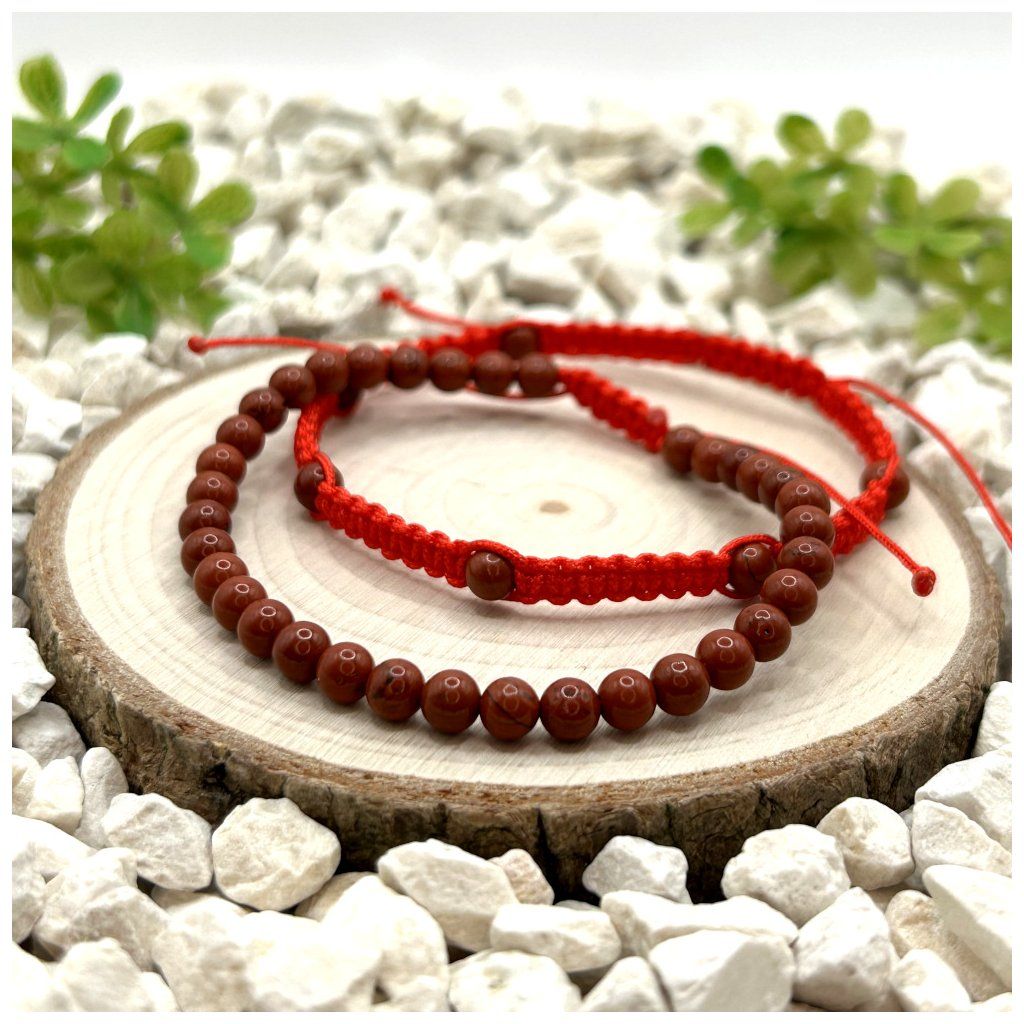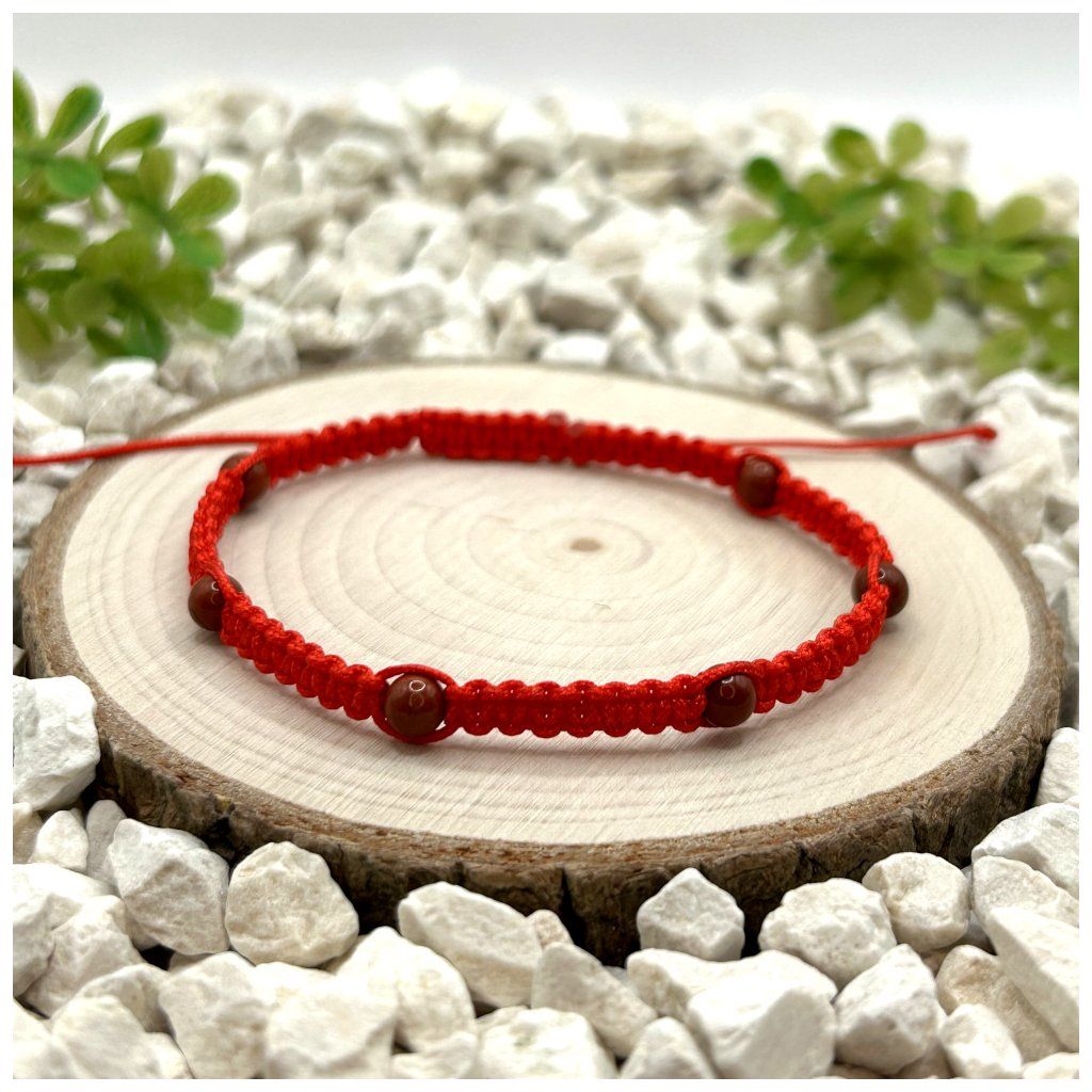 Set náramků s červeným jaspisem: provázkový a macramé v jednotném stylu