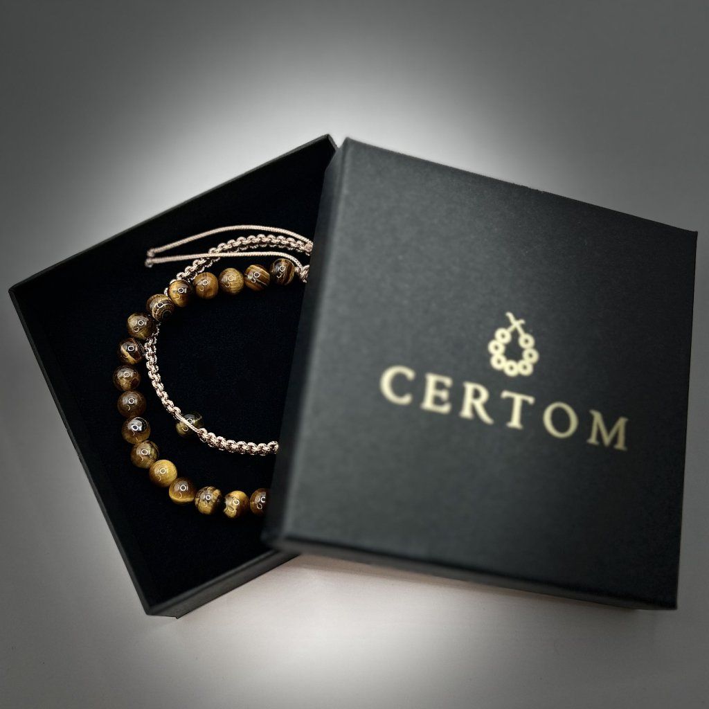 - Tygří oko – v tradiční symbolice bývá spojován s sebevědomím a rozhodností. Zlatohnědé odlesky vytvářejí typický „kočičí“ efekt, který se mění s dopadem světla. Hodí se do elegantních i ležérních kombinací a krásně ladí s hnědou, černou i béžovou.